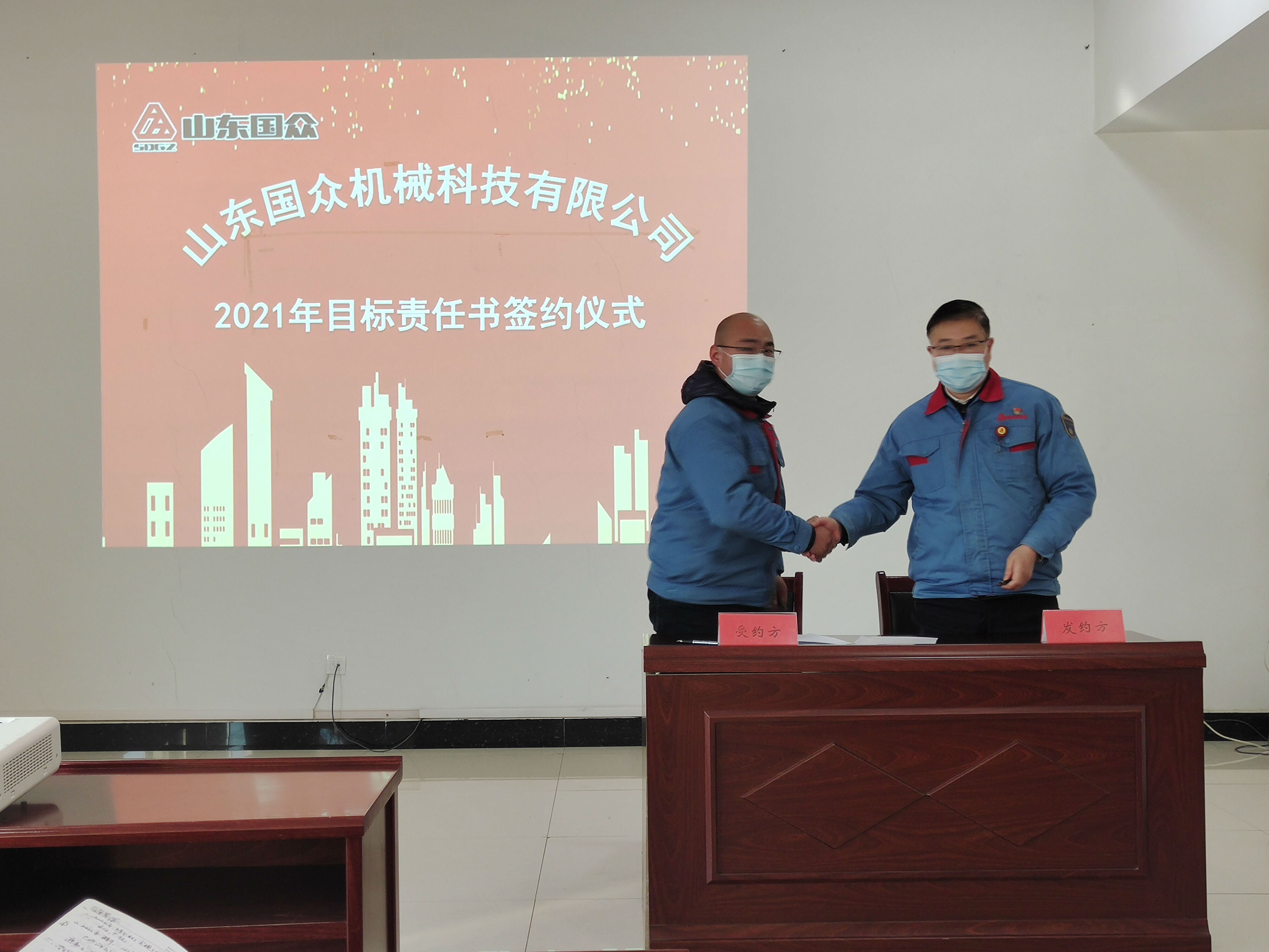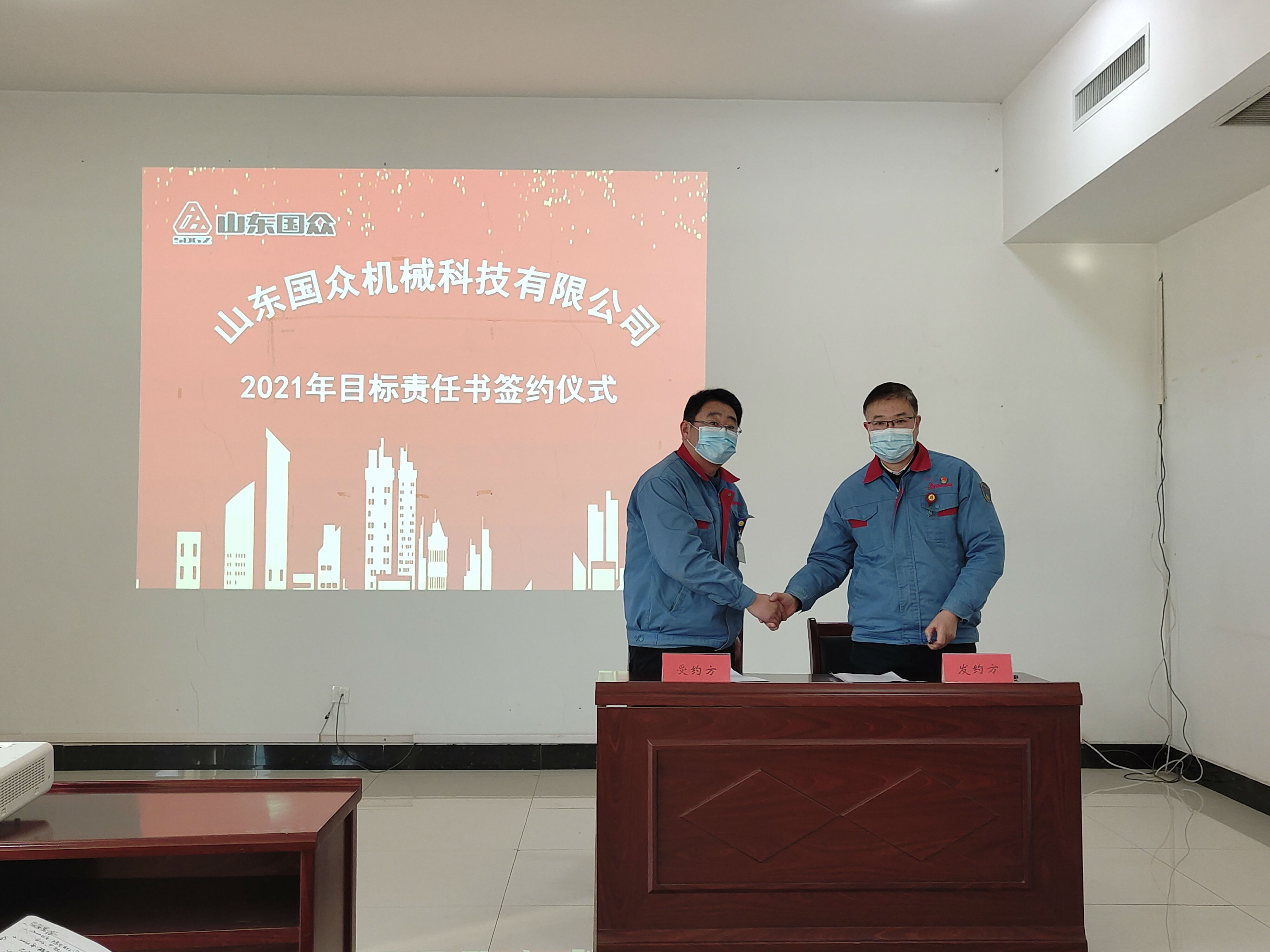 2021年1月19日下午,山東國眾在辦公樓一樓會議室舉行了 2021年度目標責任書簽約儀式。公司領導、全體管理干部參加了此次簽約儀式,劉文吉常務副總經理主持儀式。
